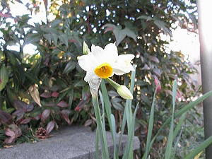 | 正門前の千両(センリョウ) | ポスト横の水仙(スイセン) |